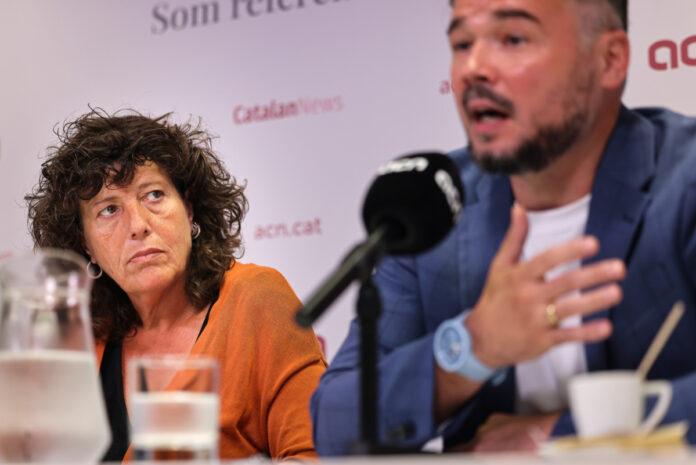 ERC s’ha compromès a parlar amb Junts i CUP l’endemà de les eleccions generals abans de negociar amb el PSOE. Així ho han afirmat els números u i dos de la llista republicana, Gabriel Rufián i Teresa Jordà, durant la roda de premsa celebrada aquest dilluns, 17 de juliol, a la seu de l’ACN, tot subratllant que l’independentisme ha de reunir-se per consensuar com “defensar Catalunya”. Rufián, de fet, ha sostingut que l’independentisme hauria ja hauria d’estar tenint converses aquesta mateixa setmana, i ha insistit que el seu partit ha demanat “sempre” que hi hagi un “preu consensuat i més alt”, en el cas hipotètic de negociar una investidura del cap de llista del PSOE, Pedro Sánchez.