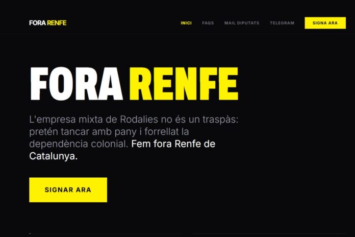El caos de Rodalies que ha col·lapsat el país durant una setmana, i que a hores d’ara continua mantenint-lo bloquejat, ha despertat diverses accions ciutadanes per a expressar el rebuig amb la nefasta gestió de la crisi i la desinversió crònica a la xarxa ferroviària. A les convocatòries i campanyes de protestes prèviament convocades (per l’independentisme les plataformes d’usuaris, o els mateixos treballadors de Renfe), se li suma ara ‘Fora Renfe de Catalunya’, una nova campanya impulsada per ‘Alhora’, la formació liderada per Jordi Graupera, que va un pas més enllà per a instar els polítics a posar fi a aquest despropòsit i, sobretot, a rebutjar fals traspàs de Rodalies, que precisament evitarà que Catalunya disposi d’una operadora ferroviària pròpia.