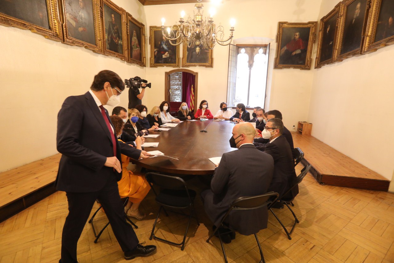 La primera reunió del govern a l’ombra ha tingut lloc a la Galeria de Catalans Il·lustres al Palau Requesens.