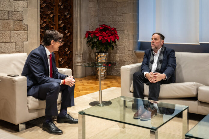 El president de la Generalitat, Salvador Illa, es reuneix amb el líder d’ERC, Oriol Junqueras, i la presidenta dels Comuns al Parlament, Jéssica Albiach, al Palau de la Generalitat. És just després que el president espanyol, Pedro Sánchez, i Junqueras hagin rubricat un pacte de finançament a la Moncloa. No hi ha acord, però, perquè Catalunya recapti íntegrament l’IRPF i ERC manté la negociació dels pressupostos en l’aire, tant els de la Generalitat com els de l’Estat. El nou model de finançament ha de ser avalat per la majoria dels diputats del Congrés i, per tant, el sí de Junts és imprescindible. De moment, el partit de Carles Puigdemont ha expressat molts recels i reclama un concert econòmic.