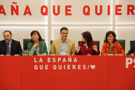 Pedro Sánchez ha estat aplaudit aquest dilluns per part de l’Executiva del partit, que s’ha reunit a Ferraz per analitzar uns resultats electorals que li obren la porta d’un pacte d’esquerres o bé un acord amb Ciutadans. La possibilitat d’una entesa amb Albert Rivera va topar aquest diumenge a la nit amb el criteri de la militància, que va deixar clar al president espanyol que “amb Rivera no”. Aquest dilluns, després de l’Executiva, el secretari d’Organització dels socialistes espanyols, José Luis Ábalos, no ha tancat cap porta, però ha afirmat que la direcció del PSOE “tenim molt clar el sentiment de la nostra militància i no els decebrem”. Ábalos ha insistit que la seva formació se centra ara en les eleccions autonòmiques i locals del 26 de maig i no espera assolir acords abans dels comicis, i ha explicat també que el líder de Ciutadans, Albert Rivera, ni tan sols ha trucat Sánchez per felicitar-lo. La prioritat, segons Ábalos, és un projecte progressista i per això “parlarem amb tots”, sense excloure tampoc ERC.