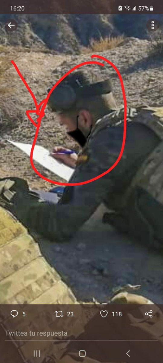 Però a les 4 imatges que acompanyen la publicació crida l’atenció una d’elles on es veu un soldat mig de cara. Els responsables de comunicació de l’Ejército devien considerar que era seria negatiu per a la imatge de les forces armades espanyoles que es copsés que els seus militars no porten mascareta. Què es podia fer? Agafar un editor de fotografia i enganxar-li una mascareta pintada. Pitjor el remei que la malaltia? Segurament, ja que pocs minuts abans de publicar aquesta notícia han esorrat el tuit. Sort, però, que La República en tenia captura i aquest és el resultat.