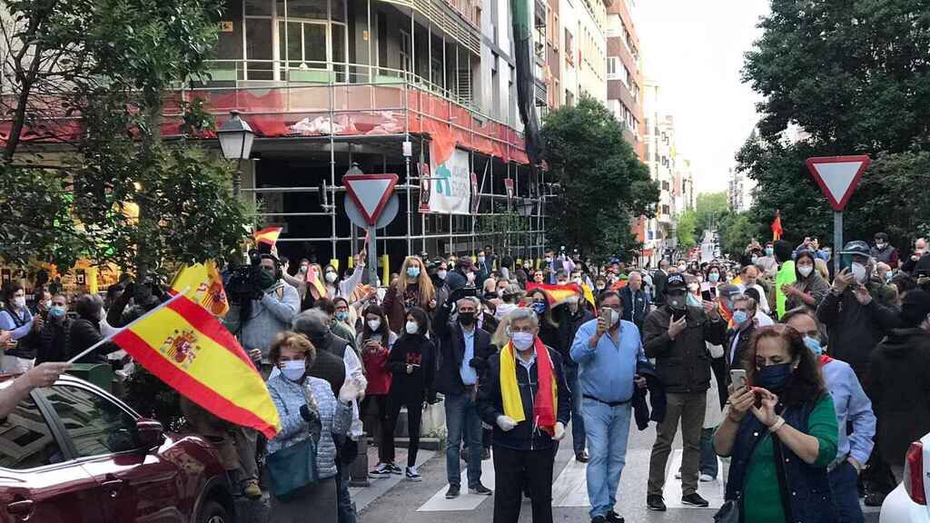 Avui els “cayetanos” es manifesten contra l’Estat d’Alarma al barri SSalamanca, criden “viva Hitler” i la policia no fa res. Us vaig explicar per que però hi torno . pic.twitter.com/EEQ90XebSe