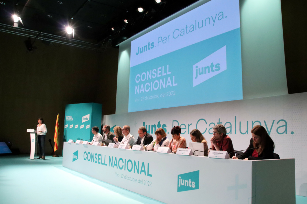 Junts celebra aquest dissabte el seu segon Consell Nacional al Prat de Llobregat després del trencament amb ERC al Govern. El partit de Laura Borràs i Jordi Turull encara una trobada de caràcter rutinari i deixa per més endavant una possible revisió de l’estratègia del partit. Segons ha confirmat l’ACN, un sector de la formació ha posat sobre la taula una proposta de resolució per convocar un Consell Nacional extraordinari i una Convenció Municipalista per debatre el rumb del partit ara que ha passat a l’oposició i afrontarà els comicis locals del 2023. La intenció és que es faci abans d’acabar l’any, però algunes fonts apunten que la data és “modificable”.