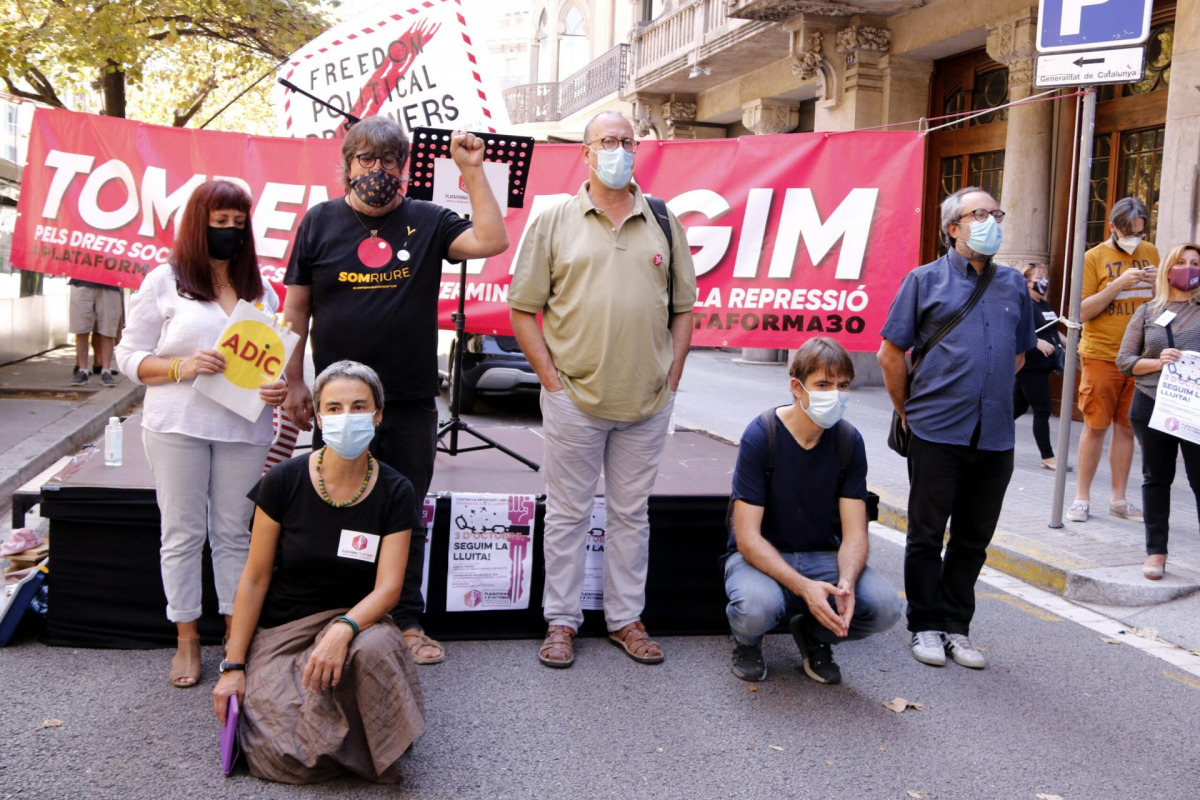 La Plataforma 3-O ha convocat una encerclada del TSJC el proper dissabte 3 d’octubre per commemorar el tercer aniversari de l’aturada de país. L’acció s’emmarca en la campanya ‘Seguim la lluita’ contra la repressió i per la defensa dels drets i les llibertats, que avui ha celebrat el seu primer acte davant l’antiga seu d’Economia, a la Rambla de Catalunya amb Gran Via. Un centenar de persones amb estelades i pancartes de suport als presos han volgut recordar els fets del 20 de setembre del 2017, amb l’entrada de la Guàrdia Civil a diferents departaments de la Generalitat i la multitudinària manifestació ciutadana. “El 20-S ens van posar un parany per criminalitzar-nos”, ha recordat Antonio Baños, membre de la direcció de l’ANC.