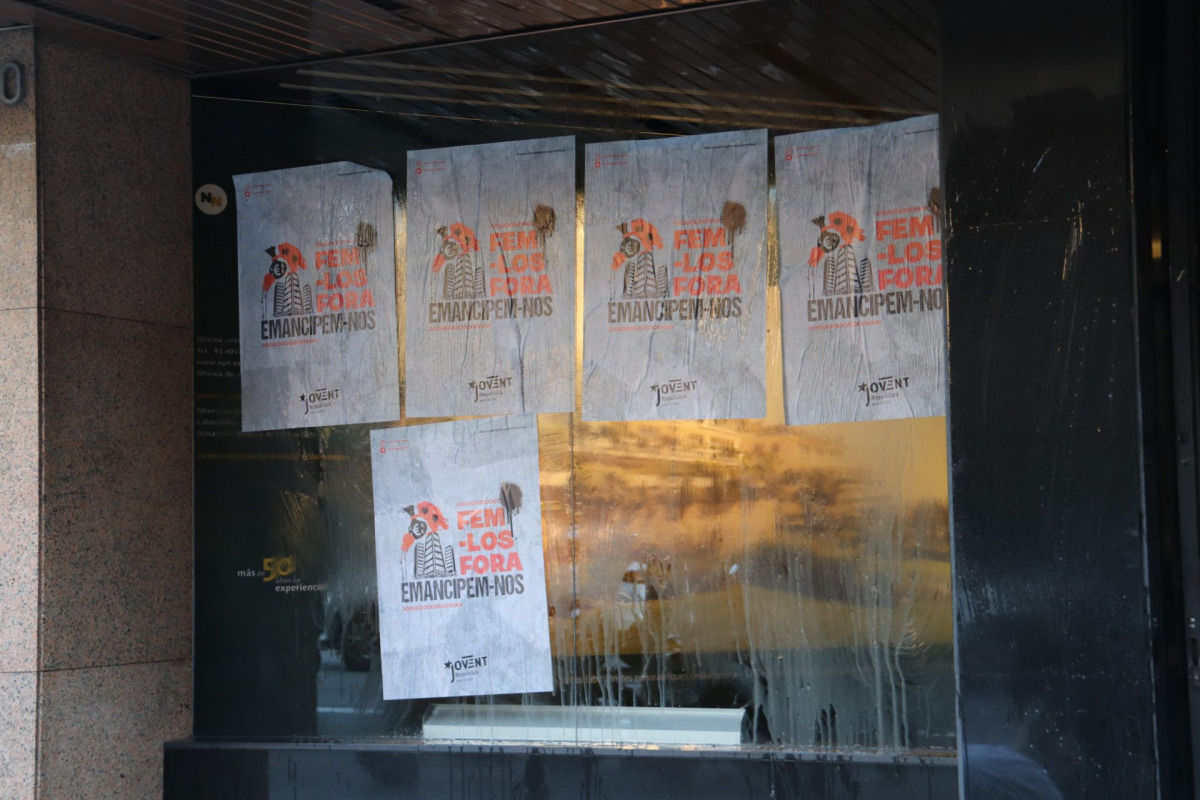 Una trentena de membres de les joventuts d’ERC (Jovent Republicà) han encartellat aquest dijous al matí la seu de Núñez i Navarro del carrer Comte d’Urgell de Barcelona. “Volem fer fora els especuladors de la nostra ciutat i per això creiem vital exposar-los i denunciar-los”, han dit els joves, que han llegit un comunicat mentre encartellaven l’edifici. L’acció ha donat el tret de sortida de la campanya ‘Fem-los fora, emancipem-nos’, que pretén denunciar la manca d’oportunitats del jovent per aconseguir un habitatge digne. En el marc de la campanya els joves han penjat cartells per tot l’edifici on s’hi llegia “Alerta especuladors”, amb l’objectiu “d’assenyalar els culpables de la precarietat”.