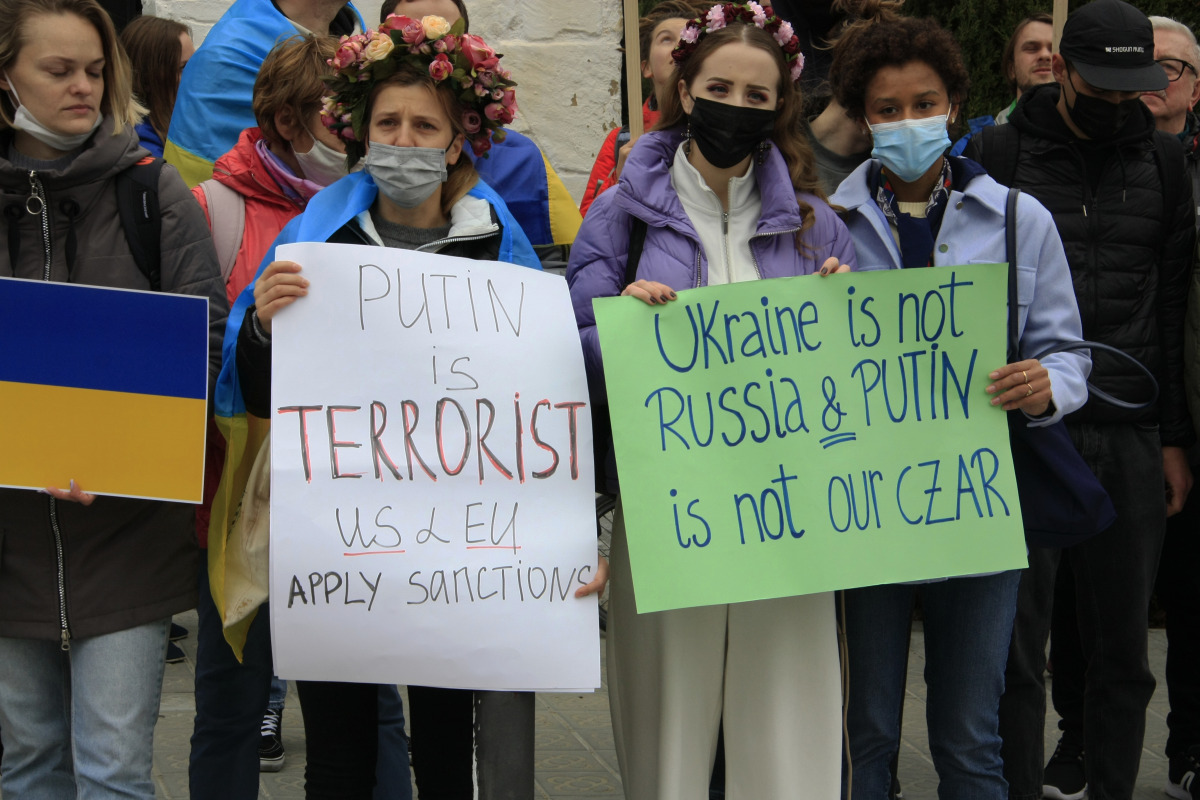 Unes 50 persones s’han reunit aquest matí davant el Consulat General de Rússia a Barcelona per condemnar l’atac de les tropes russes a Ucraïna. Els concentrats eren majoritàriament d’origen ucraïnès i rus, i portaven banderes del país atacat i cartells amb proclames pacifistes. Algunes d’aquestes consignes criticaven el líder rus Vladimir Putin, a qui han acusat de “terrorista”. D’altres apel·laven a la Unió Europea: “Para a Putin, protegeix Ucraïna”, es podia llegir. Durant la concentració s’ha cantat l’himne Ucraïnès. Els assistents estaven visiblement commocionats.