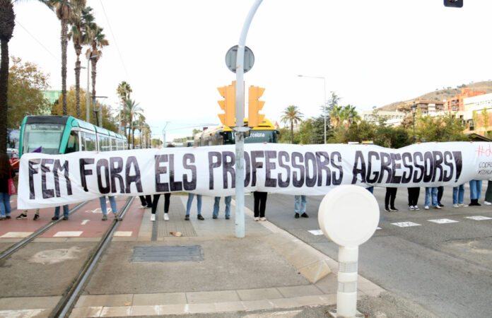 “Contra el patriarcat, acció directa!”, és un dels càntics que s’ha sentit a l’avinguda Diagonal de Barcelona, tallada per desenes d’estudiants universitaris. Convocats pel Sindicat d’Estudiants dels Països Catalans (SEPC), clamen contra la violència masclista d’alguns professors.