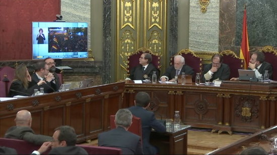 “La sala ha acordat que no és pertinent l’exhibició d’un vídeo perquè un testimoni respongui i valori sobre el que veu”, va argumentar llavors Marchena, que apuntava que aquests vídeos es podran abordar durant la fase de la prova documental. “L’esforç argumental no és per convèncer el testimoni a través d’un vídeo, sinó a la sala, i nosaltres ja els valorarem més endavant”, ha emfatitzat Marchena. La decisió va provocar les queixes formals d’Olga Arderiu i, posteriorment, també de Benet Salellas (Cuixart).