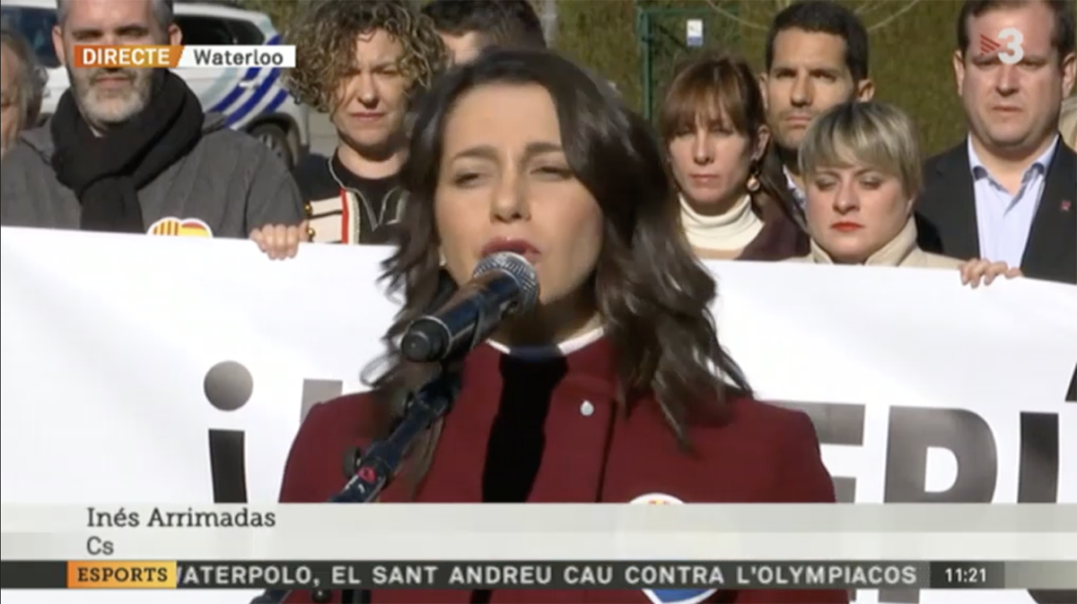 La líder de l’oposició al Parlament de Catalunya, i ara també número 1 de la llista per Barcelona de Ciudadanos al Congreso, ha oficialitzat la legitimitat del Govern a l’exili oferint una roda de premsa on li ha fet saber a Puigdemont que ara concorrerà a les eleccions espanyoles per defensar el constitucionalisme de Catalunya a Madrid i afegir que l’unionisme pot anar a Waterloo “a fer el que vulguin”.