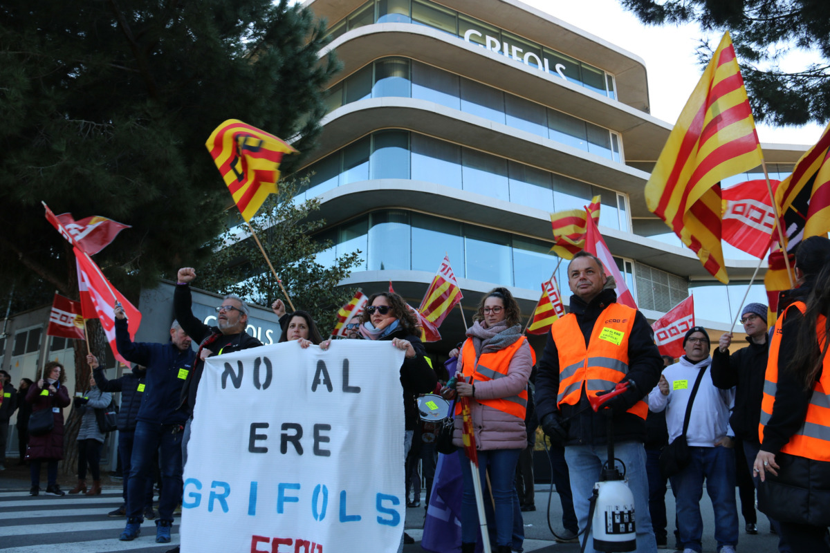 Els treballadors de les fàbriques de Grifols a Catalunya s’han concentrat aquest dimecres a les portes de la seu de l’empresa a Sant Cugat del Vallès (Vallès Occidental) per exigir a la multinacional que aturi l’expedient de regulació temporal (ERO) anunciat fa uns dies, i que contempla una retallada de 2.300 llocs de treball a tot el món.