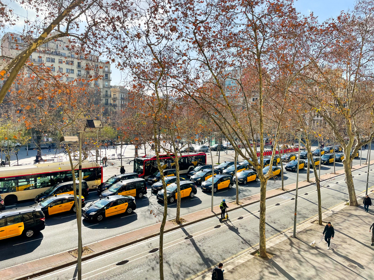 Gairebé 3.000 taxis protestant. Barcelona es converteix en un batibull de botzines, xiulets i crits. Els protagonistes són els taxistes de la capital que protesten contra les denúncies que els vol interposar Uber. El negre i el groc han tenyit les carreteres, so constant, les banderes simbolitzen ràbia i protesta. Es tracta d’una marxa lenta que han començat a poc abans de les 11 h a Plaça Espanya i finalitzarà a Arc de Triomf. L’objectiu és manifestar-se en contra l’expedient sancionador obert per l’Autoritat Catalana de la Competència a Élite Taxi i Taxi Project per suposades pressions a taxistes que treballen amb Uber.