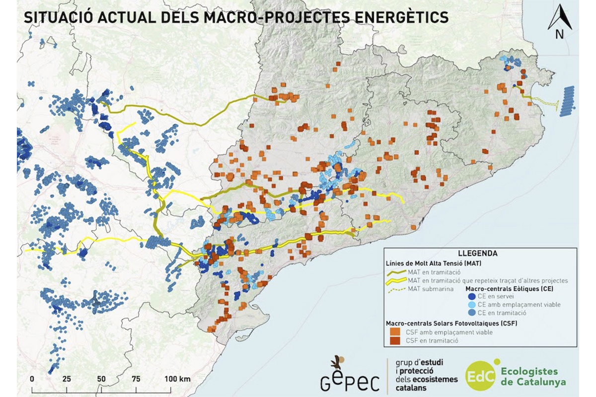 Després de les MAT de Forestalia i GreenCapital, des de l’agost passat s’han publicat una desena de projectes al BOE, la majoria per portar l’energia des dels clústers eòlics d’Aragó fins a l’àrea metropolitana de Barcelona. L’alternativa, insisteixen, és un model en què s’implantin les centrals energètiques en el sòl degradat que ja existeix al país, fins a 29.000 hectàrees, segons GEPEC-EdC.
