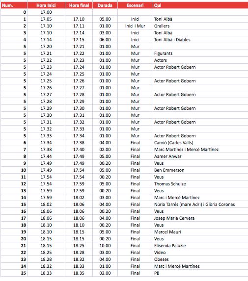 | 16:42h | Aquesta és l’escaleta de la manifestació convocada per l’Assemblea Nacional Catalana