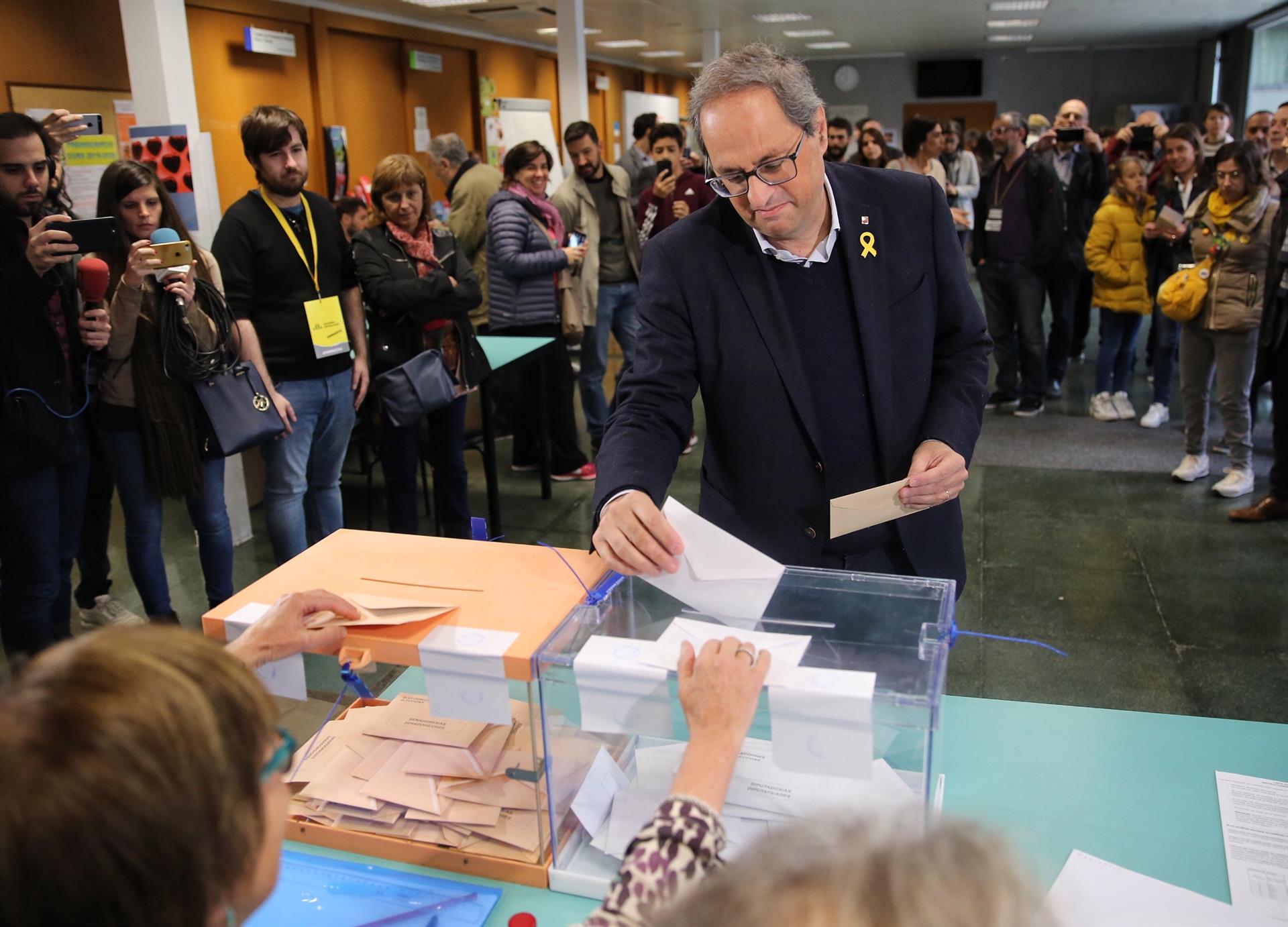 El president de la Generalitat, Quim Torra, ha fet una crida a “votar massivament” en la jornada electoral d’avui diumenge:”Sabem el que hi ha en joc. Són unes votacions crucials per al futur de Catalunya”.