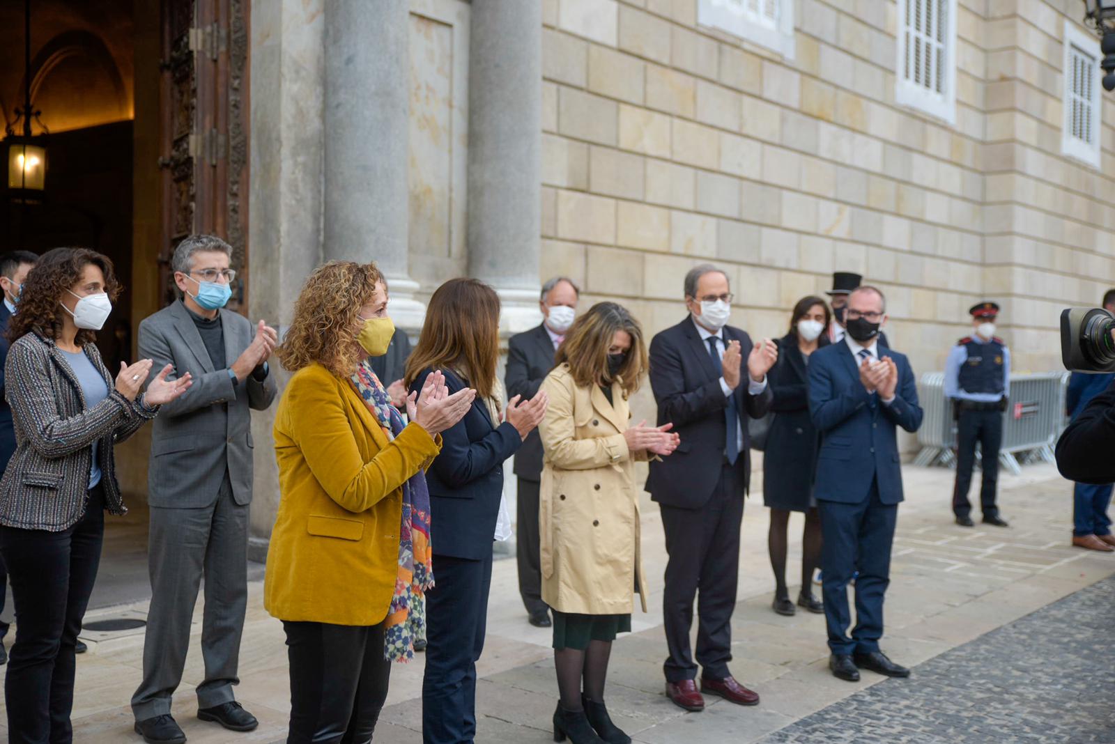 L’encarregada de fer-ho ha estat Mariona Companys, un familiar de l’expresident, que ha col·locat la llamborda acompanyada de la consellera de Presidència i portaveu de la Generalitat, Meritxell Budó, la consellera de Justícia, Ester Capella, el president Quim Torra i el vicepresident primer del Parlament, Josep Costa, durant l’acte de la Generalitat pel 80 aniversari de l’afusellament de Companys.