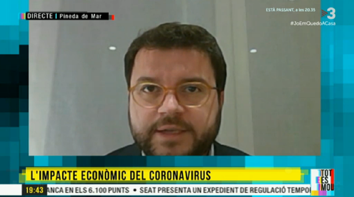 El vicepresident del Govern, Pere Aragonès, confinat a casa seva per haver donat positiu per Covid-19, el nou coronavirus que ja és una pandèmia, ha respost a la trucada via videoconferència telemàtica en directe al programa de tardes de TV3, el ‘Tot es mou’.