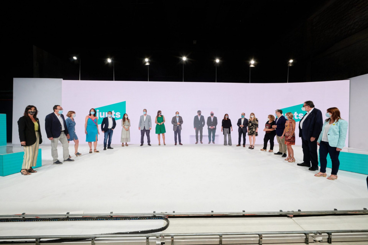 L’acte telemàtic l’ha conduït la periodista Pilar Calvo des d’un plató blanc, on destaca el color blau turquesa del nou logotip de ‘Junts’. S’hi han reproduït vídeos de diversa gent que dona suport al nou partit des d’arreu del territori: Albert Batet, Xavier Trias, Jordi Ponsa, Magda Oranich, Miquel Buch -molt criticat pel xat de YouTube on s’ha retransmès l’acte-, Joaquim Miralles, Xusa Serra, Marc Anguera, Jami Matamala, Jordi Munell, Salwa el Gharbi, Jordi Martí, Àstrid Alemany, Marc Fernàndez, Lourdes Ciuró, Martí Anglada, Àngels Planas, Marcel Padrós, Jaume Ars, Anna Figueras, Joan Sànchez, Marina Rojals, Joan Güell, Assumpció Castellví.