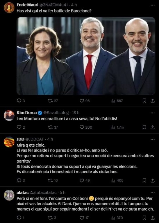 El líder del PP a Barcelona, Daniel Sirera, ha criticat a través de les xarxes socials la decisió de l’alcalde, Jaume Collboni, de reactivar el projecte Districte 11 per reforçar la cooperació amb les ciutats palestines arrasades pels atacs d’Israel. No obstant això, el que Sirera pretenia que fos una crítica aplaudida s’ha girat en contra seu, i el regidor popular n’ha sortit escaldat, ja que els usuaris ràpidament li han recordat (i recriminat) que prioritzés l’alcaldia de Collboni a la de Xavier Trias, que tot i guanyar les eleccions municipals, no va sumar prou suports per a fer govern.