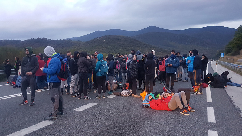 Un centenar de persones tallen des de poc abans de les onze del matí l’N-II al terme de Medinyà (Gironès). Els manifestants, convocats pel CDR, han interromput la circulació a l’AP-7 a primera hora del matí col·lapsant l’N-II. Una trentena de tractors han aturat el trànsit durant unes hores fins que han reprès la marxa per unir-se a la manifestació de Girona i ara els congregats han decidit també impedir el pas en aquesta carretera. Amb branques, fustes i plàstics han fet una foguera enmig de la via que han deixat atrapats centenars de vehicles i camions. En un primer moment, hi ha hagut retrets entre els manifestants i uns camioners que han intentat avançar la cua pel carril contrari.