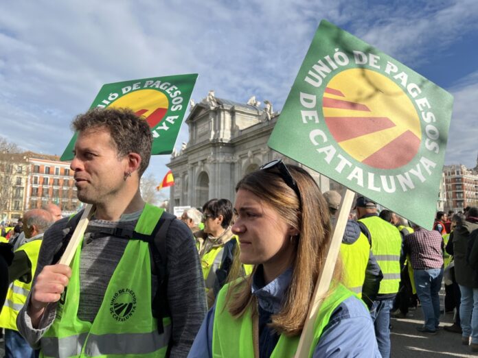 Mig miler d’agricultors catalans s’han desplaçat aquest dimecres fins a Madrid per participar en una nova jornada de mobilitzacions per alertar de la situació del camp. “El moviment que s’ha iniciat de protestes, fins que no hi hagi respostes reals no s’ha de parar”, ha dit a la premsa el coordinador nacional d’Unió de Pagesos (UP), Joan Caball, abans de l’inici de la marxa. La protesta, secundada per organitzacions de tot l’Estat, pretenia fer entrar mig miler de tractors a la capital espanyola. “No hi ha hagut cap manifestació de pagesos amb violència, som gent que volem treballar i viure dignament”, ha afegit en referència a unes declaracions del govern espanyol dient que esperava que la protesta fos “pacífica”.