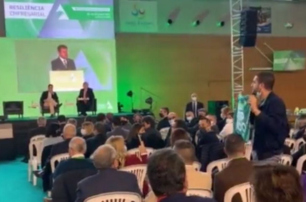 El president Pere Aragonès ha participat aquest divendres a la inauguració de la 32a Trobada Empresarial al Pirineu en la qual hi participen unes 600 persones, a la Seu d’Urgell. El que segurament no s’esperava el president era que a mitja conferència, la trobada fos boicotejada per un membre d’Arran i de la plataforma #StopJJOO, el regidor de la CUP de l’Ajuntament de la Seu d’Urgell Bernat Lavaquiol, que ha alçat la veu per dirigir-se directament al cap de l’executiu català advertint-lo que “ens vol ficar uns Jocs Olímpics d’Hivern en un moment d’emergència climàtica!”.