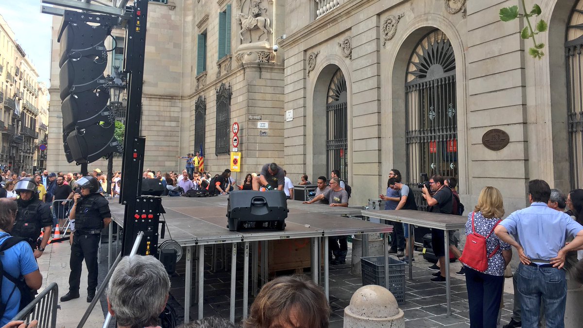La marxa ultra nacionalista radical Hamblamos Español, espanyola tenia previst acabar a la plaça Sant Jaume on hi havia muntada una tarima. Els Mossos han acordonat els operaris i aquests, davant la impossibilitat que els ultres poguessin accedir a la plaça, han desmuntat la infraestructura.