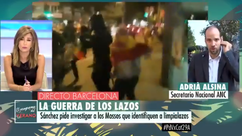 En aquest cas ha estat Tele5, que entrevistava Adrià Alsina, membre del Secretariat Nacional de l’ANC i que no es deixa entabanar, demostrant enteresa i contundència, en aquest tipus d’inervencions on un hi té molt més a perdre que a guanyar.