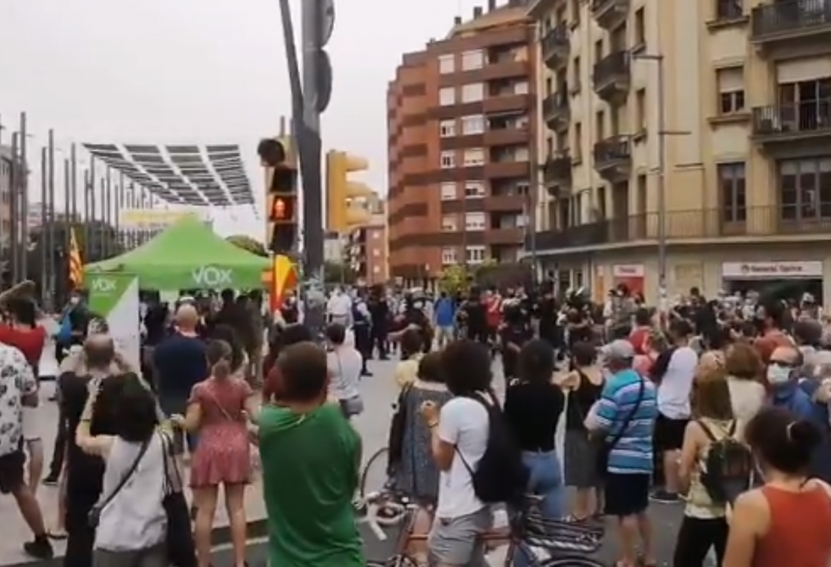 Una carpa informativa de Vox a la plaça de Sants de Barcelona ha provocat aquest dissabte una situació de tensió, crits i insults amb diversos veïns de la zona. El partit d’extrema dreta havia muntat a primera hora del matí una paradeta per fer campanya contra els indults al presos polítics, amb la presència del president de Vox a Barcelona, Juan Garriga, i del diputat al Congrés Juan Carlos Segura. Un centenar de persones s’han anat concentrant al voltant de la carpa amb proclames antifeixistes i crits de ‘fora del barri’. Els Mossos d’Esquadra han desplegat un ampli dispositiu per evitar cap incident i pels voltants de les 13 hores han acabat desallotjant els militants i simpatitzants de Vox, que han marxat escortats per agents de l’ARRO.
