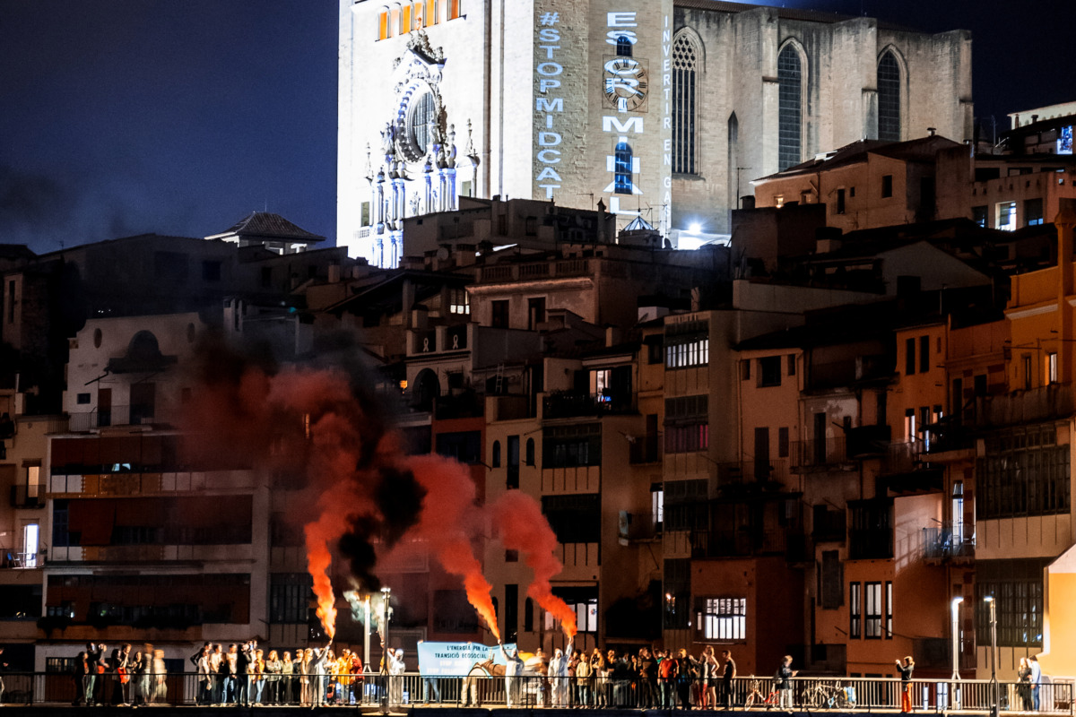 La Xarxa per la Justícia Climàtica ha projectat un gasoducte a la Catedral de Girona com a forma de protesta contra l’ampliació del Midcat. L’acció, que va dur-se a terme el passat divendres, 14 d’octubre a la nit, busca “reiterar l’oposició al gasoducte Midcat i a qualsevol infraestructura gasística”, ja que, segons la trentena de col·lectius de la Xarxa per la Justícia Climàtica participants, el gasoducte no garanteix la seguretat energètica.