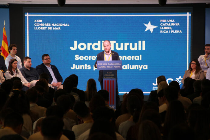 La militància de Junts ha celebrat aquest cap de setmana el seu congrés anual a l’Hotel l’Azure de Lloret de Mar (Selva). El secretari general de Junts, Jordi Turull, ha destacat durant la seva intervenció les absències del partit. “No hauria d’estar jo parlant-vos aquí, hi hauria d’haver el president Carles Puigdemont”, ha dit, i ha ressaltat que “per tant, la feina no s’ha acabat”. També ha fet menció de les absències de Lluís Puig i Toni Comín.