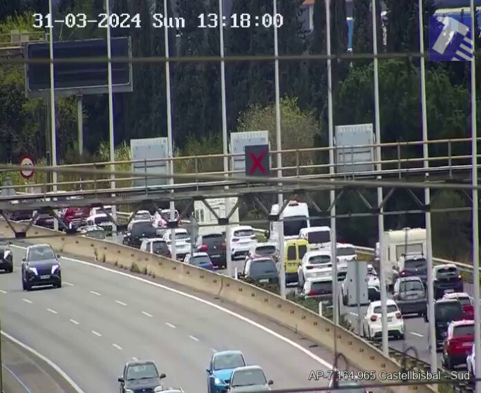 L’AP-7 acumula diversos punts de retenció i la C-16 es troba tallada al Berguedà per un accident en l’inici de l’operació tornada de Setmana Santa, segons el Servei Català de Trànsit (SCT). A les 13.30 hores d’aquest diumenge, l’AP-7 registra uns 6,5 quilòmetres d’aturades entre Santa Maria de Palautordera i Llinars del Vallès i uns altres 3,5 quilòmetres de circulació lenta entre Olèrdola i Vilafranca del Penedès. També hi ha 2,5 quilòmetres de circulació intensa a la Roca del Vallès i 2 quilòmetres a Castellbisbal. A la C-16, una topada a la Nou de Berguedà talla la via i provoca fins a 6,5 quilòmetres de congestió entre Cercs i Guardiola de Berguedà. En paral·lel, l’N-240 i la C-14 a Montblanc sumen uns quatre quilòmetres de cua.