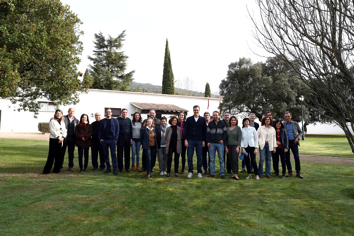 El president del govern espanyol, Pedro Sánchez, ha reunit aquest dissabte tots els seus ministres a la finca estatal de Quintos de Mora (Toledo) amb l’objectiu de preparar l’agenda legislativa del trimestre. En la trobada informal, els ministres han exposat les prioritats dels seus departaments i han aprofitat per “engreixar” la seva relació política i personal, segons fonts de la Moncloa. El president Sánchez ha estat el primer en arribar i després un autocar ha portat gran part dels ministres, a excepció d’Irene Montero i Margarita Robles que s’hi han desplaçat en cotxe. La sessió de treball ha finalitzat amb una intervenció de Sánchez, que ha afirmat que s’inicia “un temps d’optimisme, molt esperançador i de gran dinamisme legislatiu”.