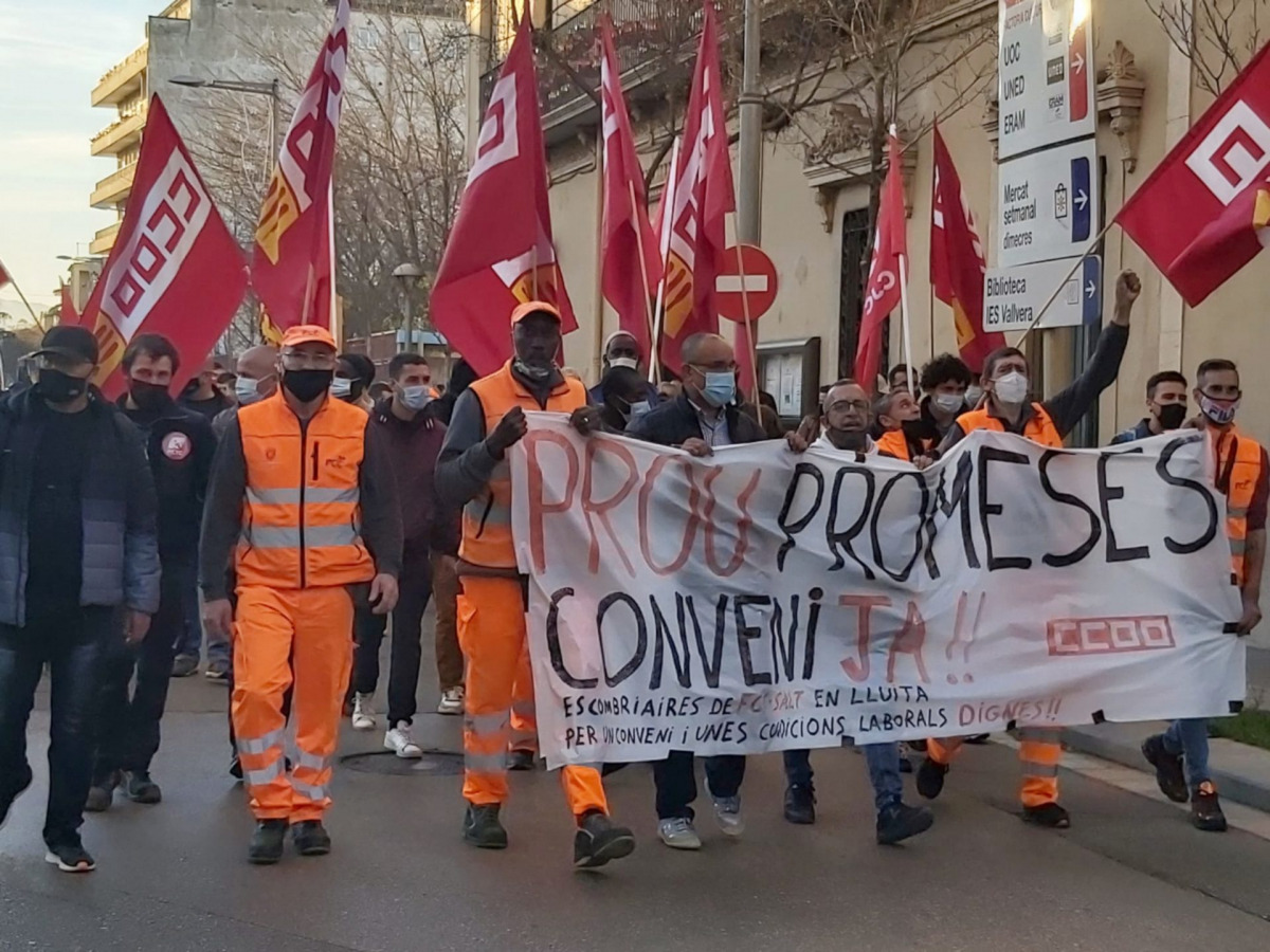 El segon intent de mediació entre els escombriaires de Salt (Gironès) i la concessionària responsable del servei FCC Medio Ambiente ha acabat sense cap acord i, per tant, la vaga que fa set dies que dura continuarà. La reunió amb prou feines ha durat dues hores i des de fonts sindicals lamenten que l’empresa ha vingut a “cobrir l’expedient”. Tot plegat després de set dies d’aturada que han deixat imatges de voreres plenes de brossa i una manifestació dels treballadors aquest passat divendres que va acabar amb una reunió amb responsables municipals de Salt i que no va servir per desencallar el conflicte. Aquestes mateixes fonts sindicals adverteixen que la situació “es pot allargar dies”, ja que les postures estan allunyades.