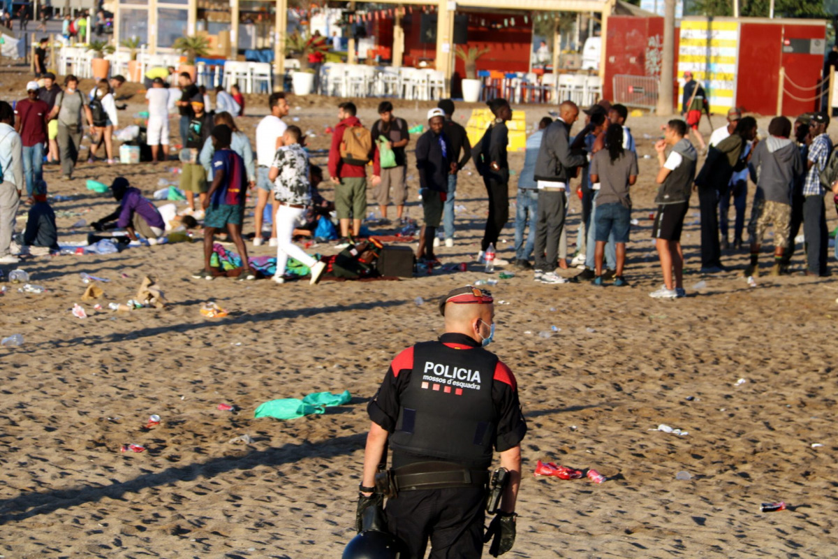 La Guàrdia Urbana i els Mossos d’Esquadra han desallotjat en un operatiu coordinat les platges de Barcelona després de la revetlla de Sant Joan per tal que els equips de neteja hi poguessin accedir. Tot i que per megafonia s’ha insistit durant la nit que els sorrals es tancarien a les sis, quan ha arribat l’hora milers de persones encara ocupaven les platges. A la de la Barceloneta el desallotjament, que ha transcorregut sense incidents, ha començat a les 6:45 quan una vintena de mossos han escombrat el sorral en direcció Llobregat obligant a marxar els grups de gent que trobaven. En sortir al passeig Marítim, els obligaven a sortir per Joan de Borbó, un dels dos accessos habilitats per evitar que la gent passés per la Barceloneta. Tot just darrera dels Mossos d’Esquadra, una trentena d’operaris dels serveis de neteja avançaven en una filera recollint a mà els plàstics, ampolles i llaunes que anaven trobant. Seguidament, el torn era dels encarregats de buidar les papereres instal·lades a la sorra i, per últim, el de les màquines garbelladores.