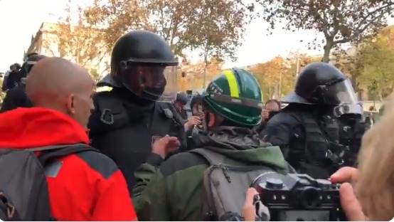 És el cas d’aquest vídeo que mostra una baralla dialectal entre funcionaris públics: per una banda un agent de la Brimo dels Mossos i per l’altra un bomber i un agent rural. Aquests dos últims feien tasques de mediació per a evitar que es produïssin càrregues de la policia catalana contra els manifestants.