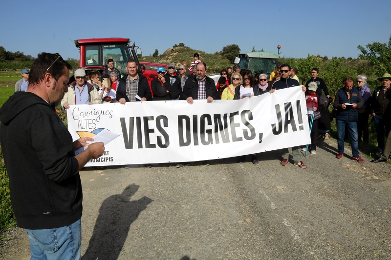 Veïns de les Garrigues Altes han tallat aquest dissabte la carretera de Castelldans a Torrebesses, a l’alçada entre Granyena de les Garrigues (Garrigues) i el Cogul, per denunciar el deteriorament de la carretera i exigir la creació de l’Eix Transversal de Ponent, una via que connectaria la plana de l’Urgell amb les Terres de l’Ebre. L’acte, convocat per la comunitat de municipis de les Garrigues Altes, ha aplegat mig centenar de veïns i ha comptat amb la lectura del manifest i una caminada per un tram d’aquesta via, que ha quedat tallada durant 4 hores. Veïns de la zona denuncien el mal estat de la carretera i reclamen vies “dignes” per poder desplaçar-se als pobles del voltant i a les Borges Blanques.