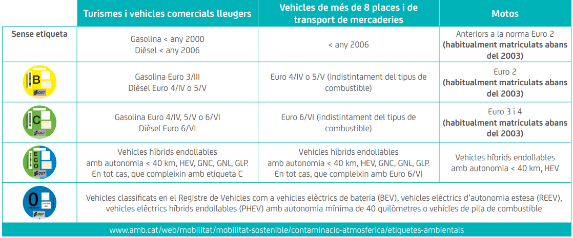 Tenen una moratòria d’un any els autocars, camions i furgonetes. Altres vehicles especials com firaries o per a persones amb mobilitat reduïda podem tramitar les exempcions. No hi ha moratòria pels taxis tot i que les dades que té l’AMB a la mà de fa dos anys expliquen que entre el col·lectiu hi ha molt pocs taxis sense etiqueta.