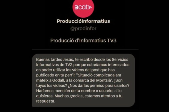 La televisió pública de Catalunya, TV3, va néixer amb l’objectiu d’esdevenir un espai mediàtic de referència en català per tal de promocionar la llengua i la cultura catalanes. Tanmateix, a l’hora de la veritat i dècades després d’haver adoptat aquests compromisos, la televisió pública catalana demostra que ha deixat de prioritzar la llengua en tots els àmbits que l’abracen, tal com demostra un ciutadà del Montsià afectat per les inundacions de la dana. El ciutadà ha compartit a través de les xarxes socials que, arran d’una sèrie de vídeos penjats que mostraven la intensitat dels aiguats, molts periodistes i mitjans el van contactar demanant-li els vídeos. Tots ells van escriure-li en català, ja que el missatge de l’autor que acompanyava les imatges estava escrit en català; només un mitjà de comunicació va fer la petició en castellà, i aquest va ser TV3.