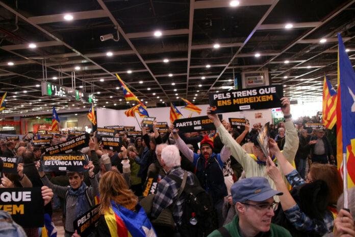 Una protesta de l’Assemblea Nacional de Catalunya (ANC) a l’estació de Sants aquest dissabte al migdia ha denunciat “el caos insostenible de Rodalies”. Així ho ha expressat el president de l’entitat, Lluís Llach, que ha carregat contra “el tracte colonial de la metròpoli espanyola”, que segons ha dit és “premeditat”. Una situació que pel president de l’ANC és fruit “del robatori fiscal espanyol i de dècades de manca d’inversió i manteniment”. La mobilització ha concentrat al voltant d’unes 500 persones que han irromput al vestíbul de l’estació amb diferents cartells on es podien llegir lemes com ara ‘Farts de Renfe’, ‘Pels trens que ens mereixem’ i ‘Independència és l’única via’.