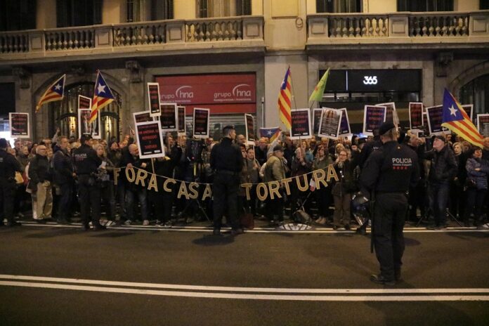 Unes 150 persones s’han concentrat aquest dimarts davant la comissaria de la Via Laietana de Barcelona per reclamar que aquesta instal·lació policial, protagonista de nombrosos episodis de tortura durant el franquisme, esdevingui centre de memòria. L’acte ha comptat amb la participació de la presidenta de l’ANC, Dolors Feliu, i del president de la Caixa de Solidaritat, Josep Cruanyes, i també s’hi ha deixat veure el líder del grup municipal d’ERC, Ernest Maragall. Uns metres més avall de la comissaria, blindada i fortament custodiada pels Mossos d’Esquadra, una vintena de persones han respost a la crida que havia fet Vox per contrarestar la protesta de la Comissió de la Dignitat i l’ANC.