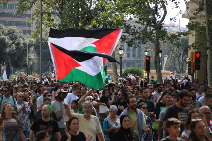Unes 700 persones -segons la Guàrdia Urbana- s’han manifestat aquest dissabte pels carrers de Barcelona per defensar Palestina contra el “genocidi” d’Israel. La protesta ha començat a les 12 hores a la rambla del Raval i s’ha desplaçat fins a les places de la Universitat i de Catalunya, fins arribar al Passeig de Gràcia, per acabar a la seu de la Comissió Europea. La mobilització s’ha convertit en una crida a la resistència del poble palestí, i s’han cridat proclames contra l’OTAN i el “genocidi” d’Israel, país que consideren un “estat colonial”. S’ha cridat al “boicot” a Israel i s’ha defensat Palestina amb proclames com “Gaza no estàs sola”. “Israel assassí del poble palestí” ha estat el crit més unànime a la manifestació.