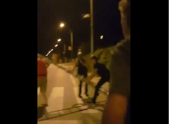 Així es pot comprovar en aquest vídeo on es pot veure com un grup de nacionalistes espanyols encaputxats agredeixen un grup de catalans quan aquests els gravaven amb els seus mòbils. Fins i tot, un d’ells, li etziba un cop de puny a un ciutadà i, després, intenta esclafar-lo amb l’escala que usa per arrencar la simbologia democràtica, pacífica i legítima republicana. Alguns d’ells també van intentar intimidar-los amb mostrant ganivets.