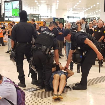 Hi ha una forta presència de Mossos d’Esquadra que demana als manifestants que marxin i, davant la seva negativa, ja han començat a retirar-los. També hi ha agents de la policia espanyola que miren com els Mossos tracten amb els concentrats, que porten cartells i entonen proclames demanant la llibertat dels presos polítics i la independència. Cada cop arriben més agents dels Mossos d’Esquadra mentre que fora de l’estació de Sants es va concentrant gent.