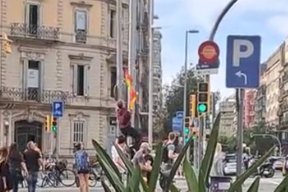 S’han hagut de posar els veïns de Barcelona a retirar les banderes espanyoles que portaven dia i mig penjades a Passeig de Gràcia. Cap brigada municipal ha mogut un dit.