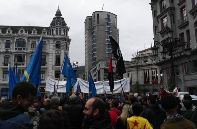 La solidaritat i les protestes s’estenen fora dels Països Catalans. El sobiranisme asturià s’ha concentrat a Uviéu davant de l’edifici on el rei i l’hereva lliuraven els Premis Princesa d’Asturies. #RevoltaPopularpic.twitter.com/obAOeIQfSw