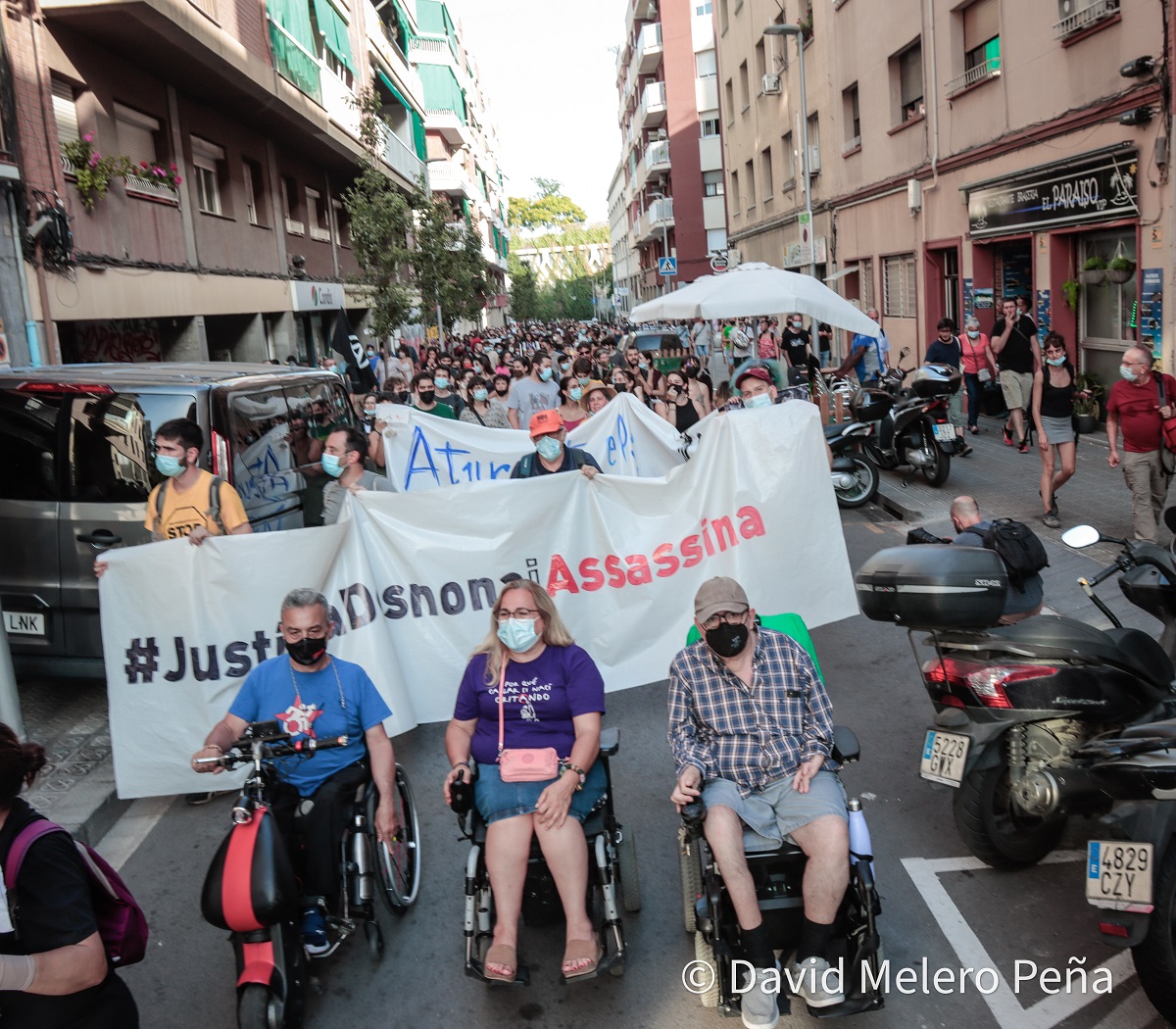 Mig miler de persones s’han mobilitzat aquest dimarts al vespre a Barcelona després del suïcidi dilluns d’un home que havia de ser desnonat al barri de Sants, segons dades de la Guàrdia Urbana. Amb lemes com ‘No són suïcidis, són assassinats’ o ‘Justícia desnona i assassina’, la convocatòria ha aplegat davant de la delegació del govern espanyol a Catalunya centenars de persones convocades per diferents entitats com la PAH, el Grup d’Habitatge de Sants o el Sindicat de Llogateres. Una part dels concentrats han iniciat la manifestació a la Plaça de Sants per després unir-se al grup que havia anat directament al carrer Mallorca. Alguns d’aquest grup han fet pintades en una immobiliària.