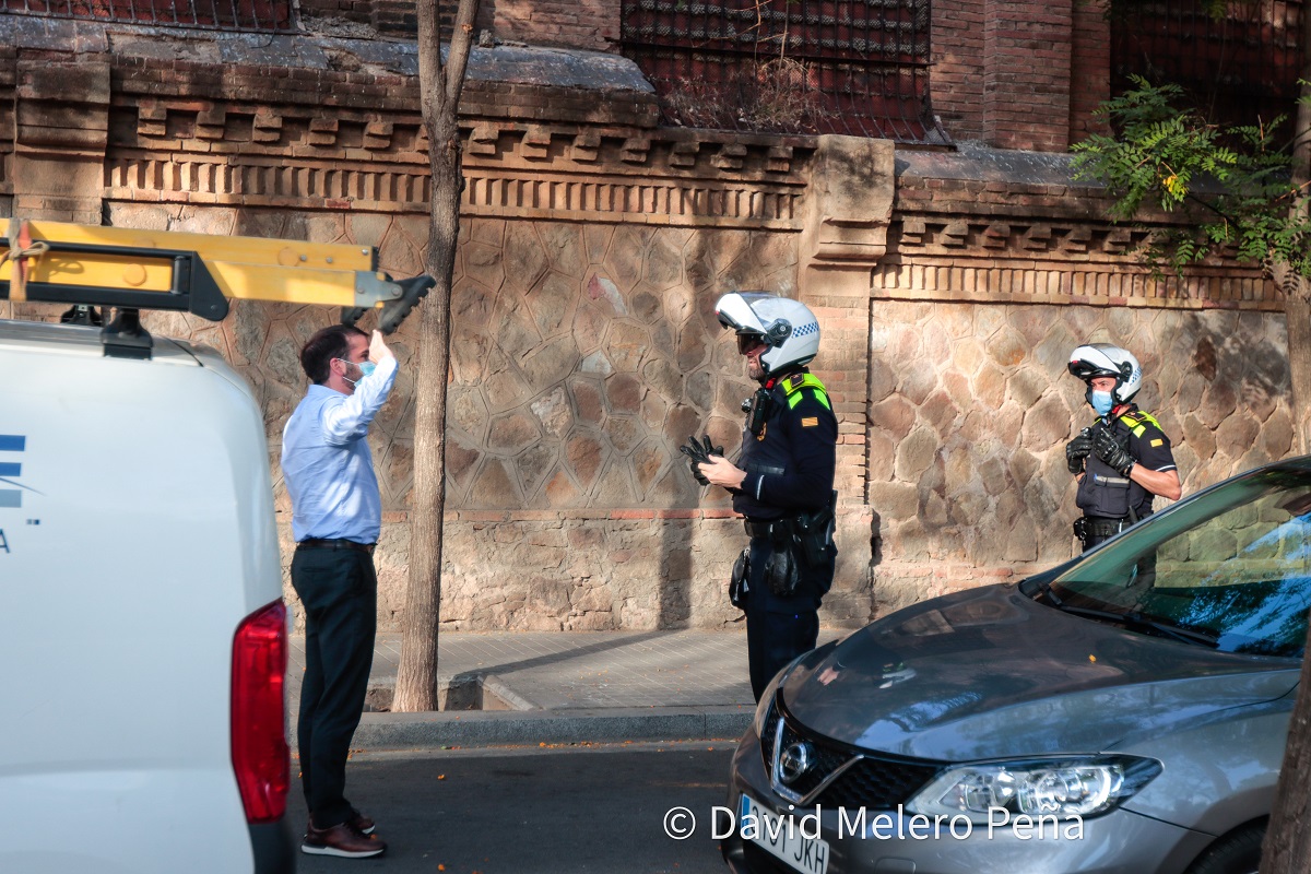 Ara mateix la manifestació en solidaritat a Segundo Fuentes, el veí del barri de Sants, és a davant de la delegació del govern espanyol al C\Mallorca amb un gran cordó policial. pic.twitter.com/H6tELDHcTL