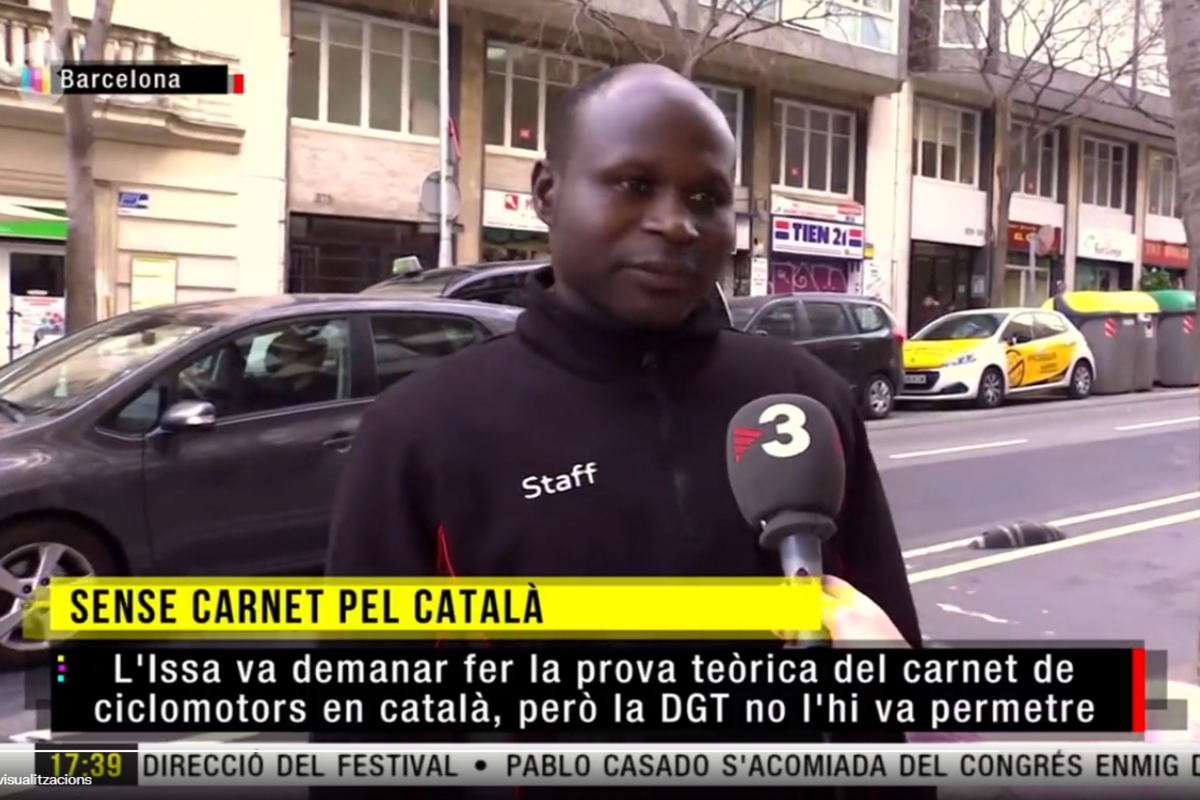 El programa Tot es Mou de TV3 ha difós un cas greu de discriminació lingüística: la DGT ha prohibit a Issa Konare, veí de Santa Coloma de Gramenet, examinar-se de la teòrica de ciclomotor en català, la llengua que ha après des que viu a Catalunya.