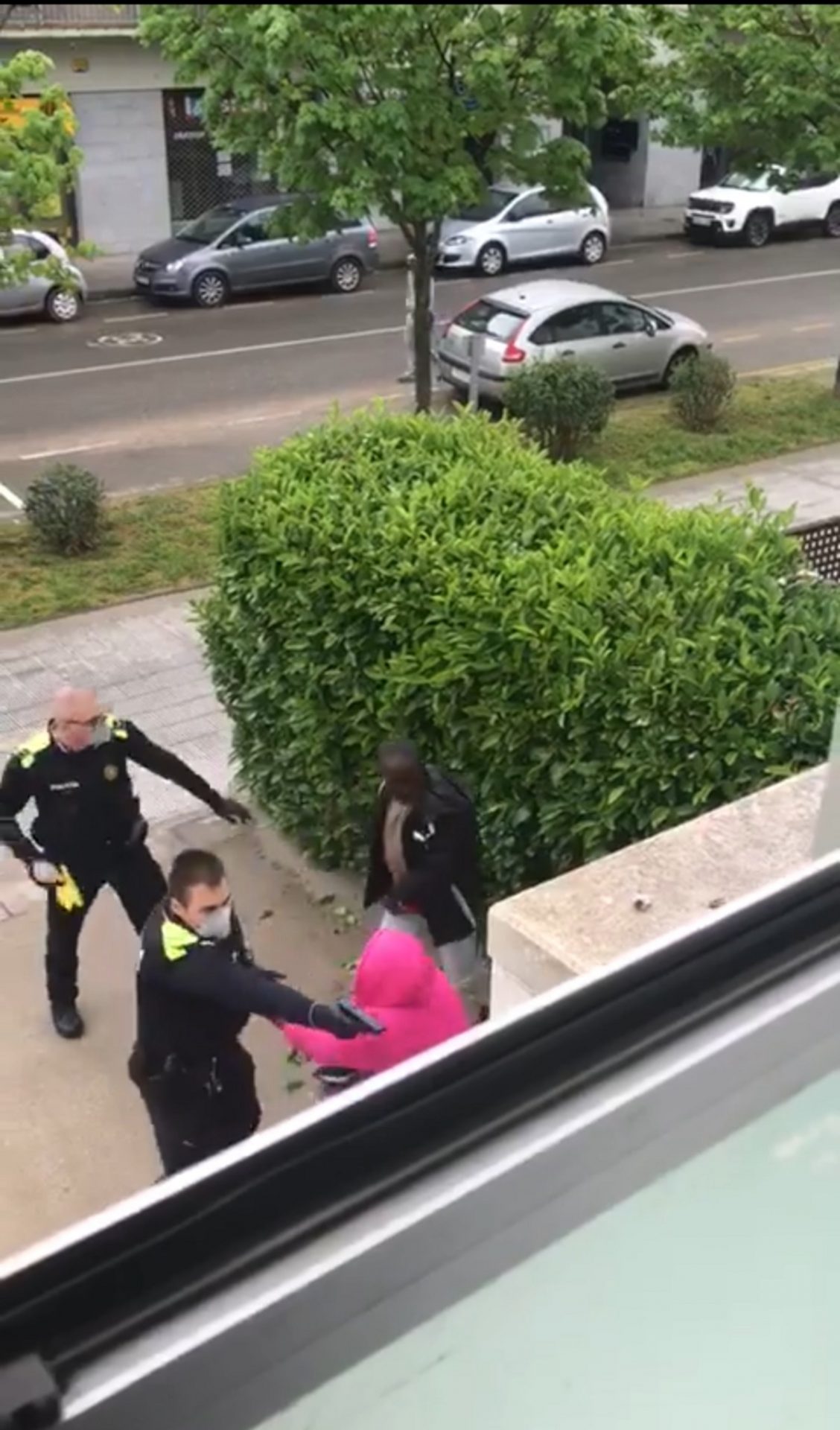 Ja dins del portal el policia l’ha agafat i l’ha tret cap a fora mentre ell s’intentava escapolir. Aleshores ha vingut el seu germà i ha intentat evitar que els policies el tiressin a terra per arrestar-lo. En aquell moment, un dels agents ha donat una puntada de peu al germà que ha acabat caient a terra mentre l’apuntava amb una pistola elèctrica – l’Ajuntament va autoritzar-ne el seu ús fa pocs mesos.